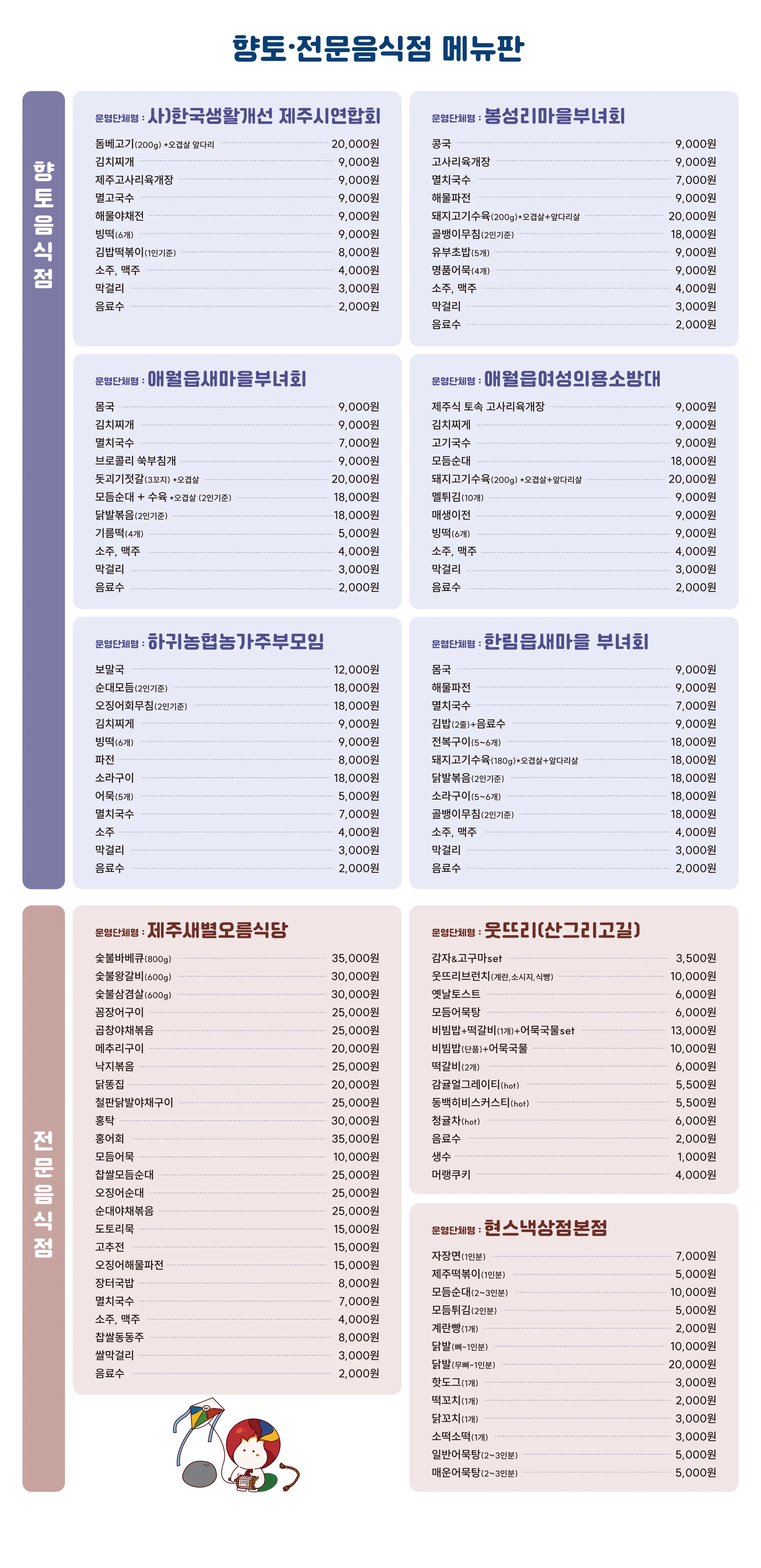 제주도에서만 맛볼 수 있는 다양한 음식을 준비해 두었으니,